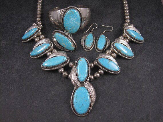 Navajo Artist E Spencer Five Stone Turquoise Necklace With Matching Earrings