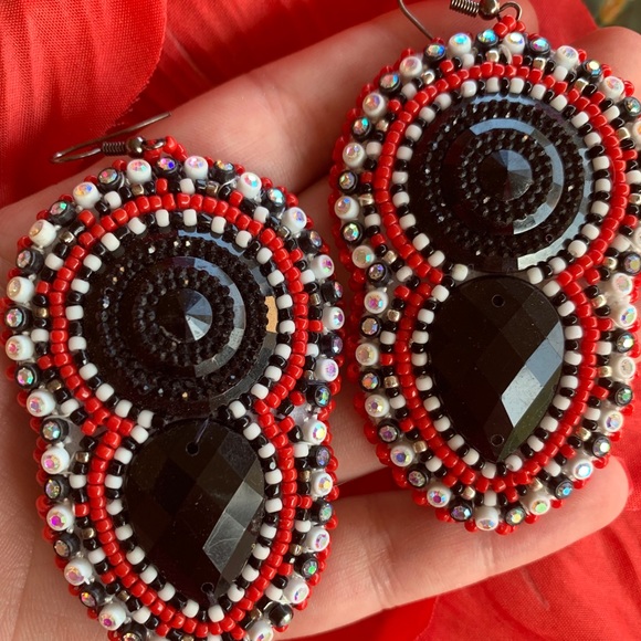 Native American Beaded Earrings Long Multicolor Red Seed Bead Earrings New Ebay